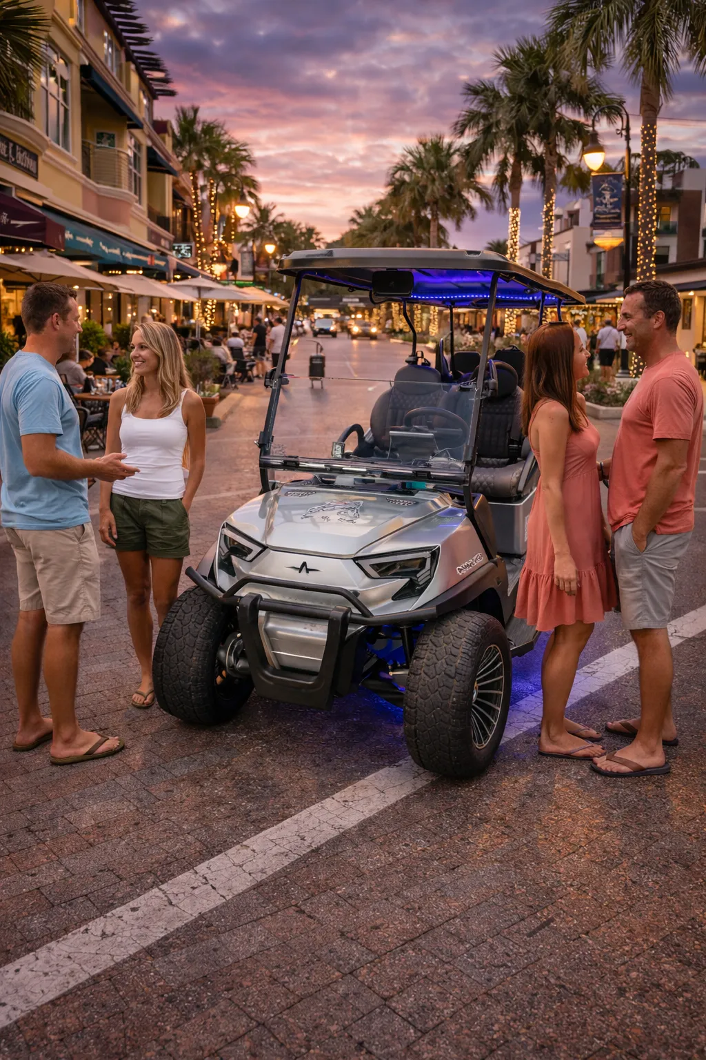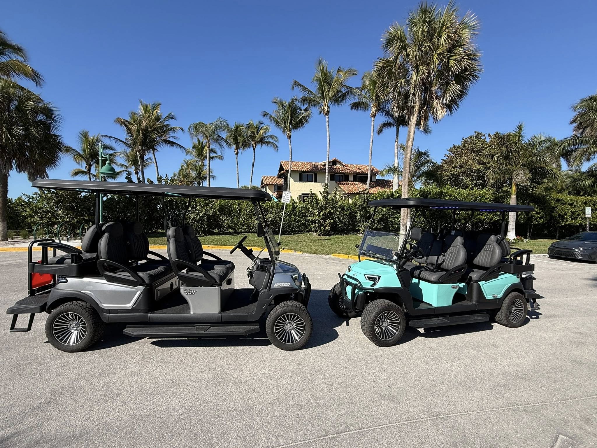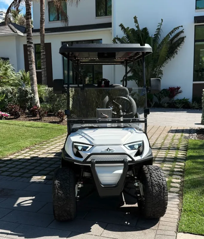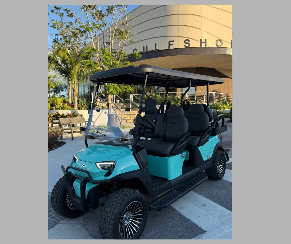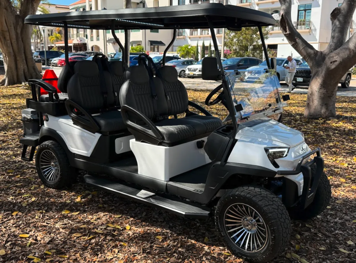 The Diamond is the latest sleek Atlas-style 6-seater luxury golf cart designed for comfort, performance, and fun. It's modern white design and smooth electric ride make it the perfect way to explore downtown Naples, local neighborhoods, restaurants, and beaches.