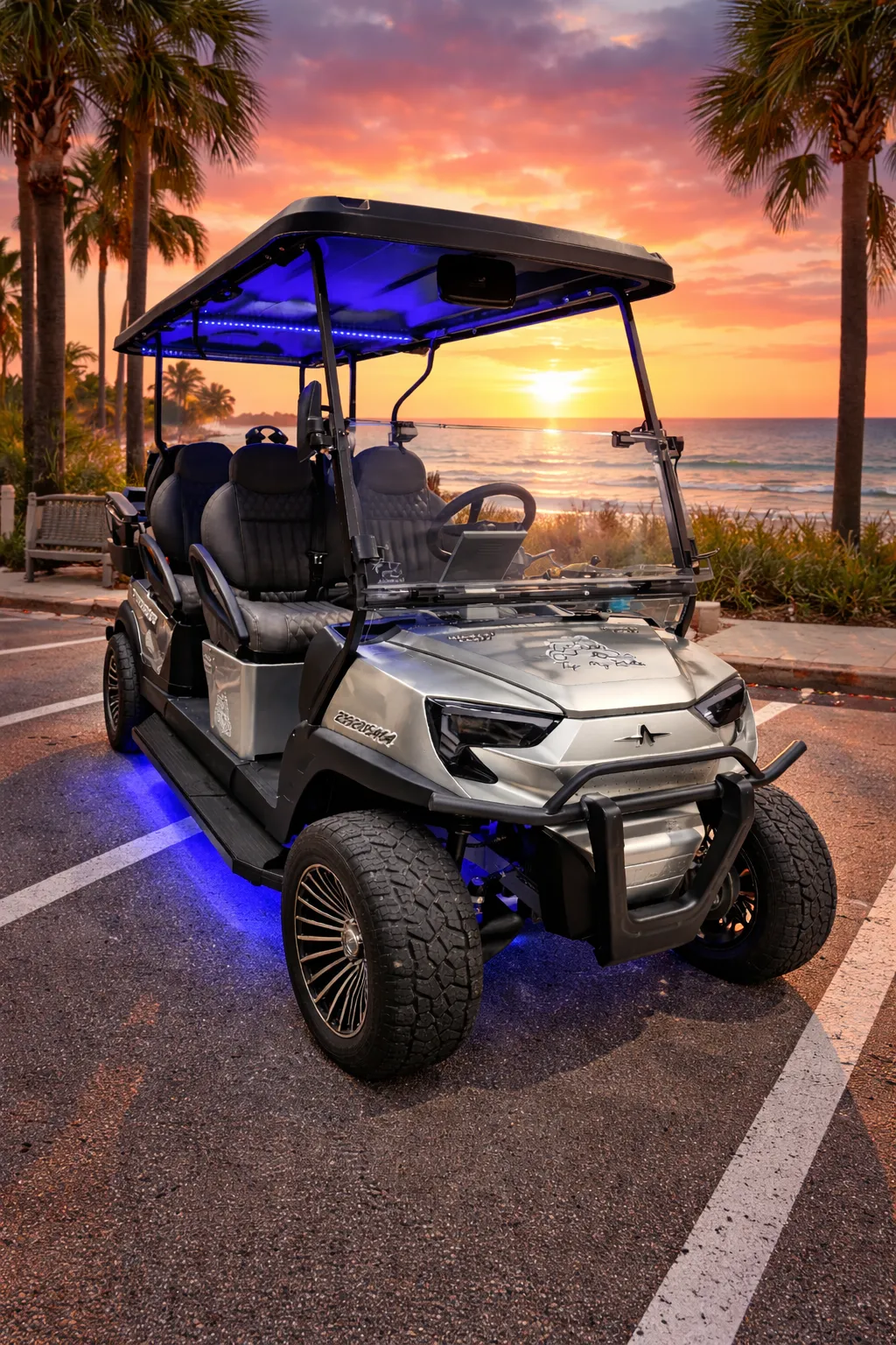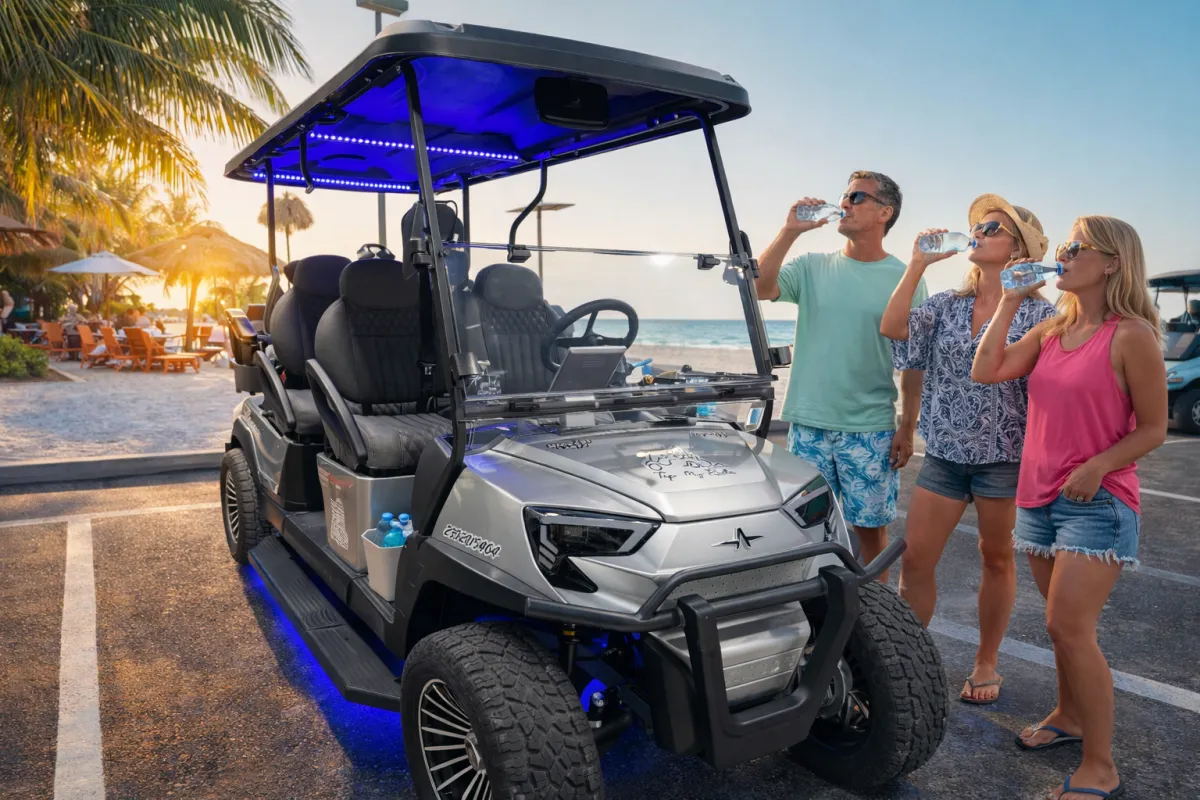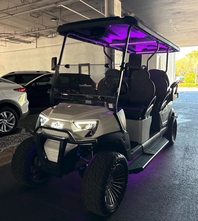 Powered by long-lasting lithium batteries, the Diamond delivers reliable performance all day. It also features Bluetooth speakers, LED lighting, comfortable seating for six, and a built-in cooler, making it ideal for beach trips, sightseeing, or cruising around town with friends and family.